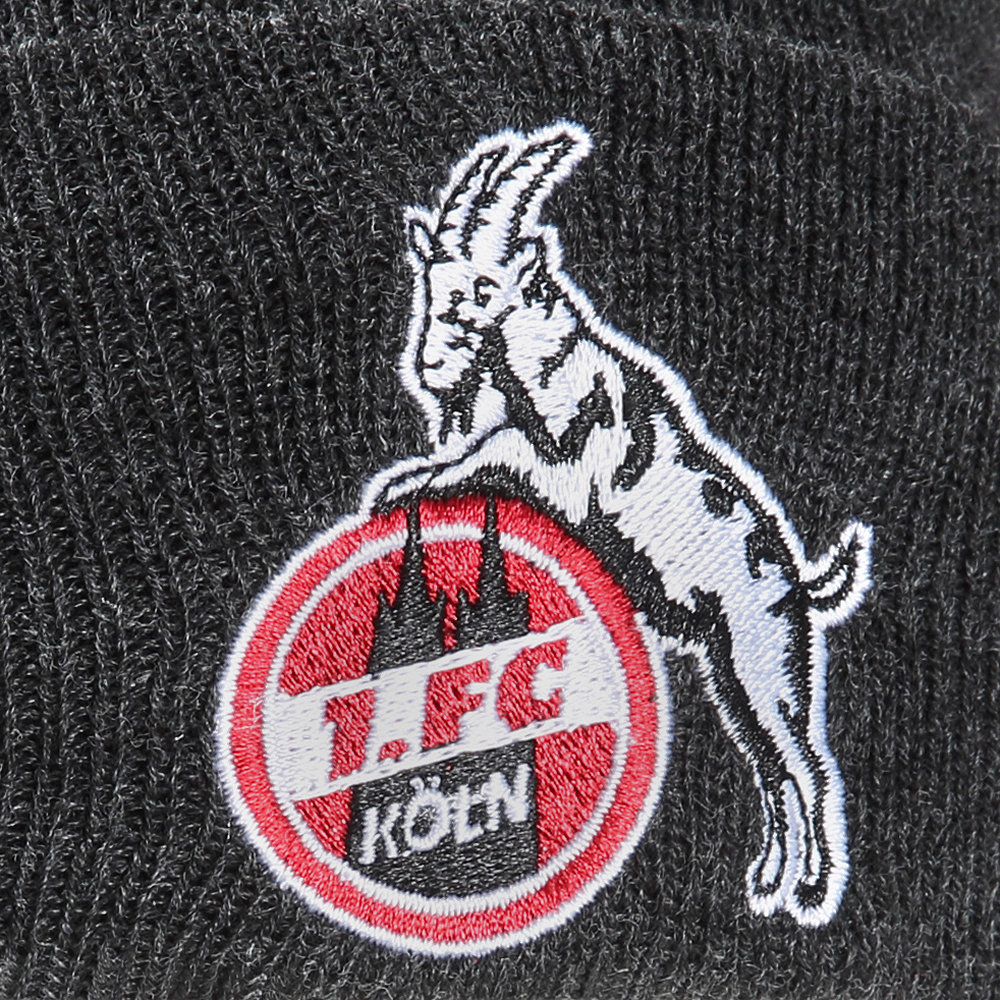 • Klassische Strickmütze in Anthrazit mit gesticktem FC Logo