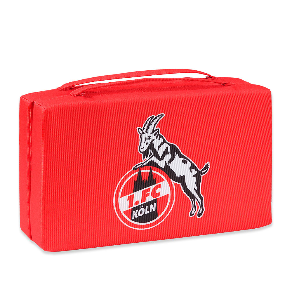 • Sitzkissen in rot, ideal für den nächsten Stadionbesuch • Wasserabweisend • Mit großem FC-Logo • Mit 2 Henkeln zum Tragen