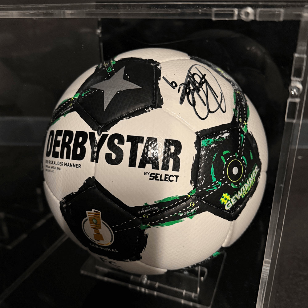 • Der Ball wird inkl. Vitrine geliefert