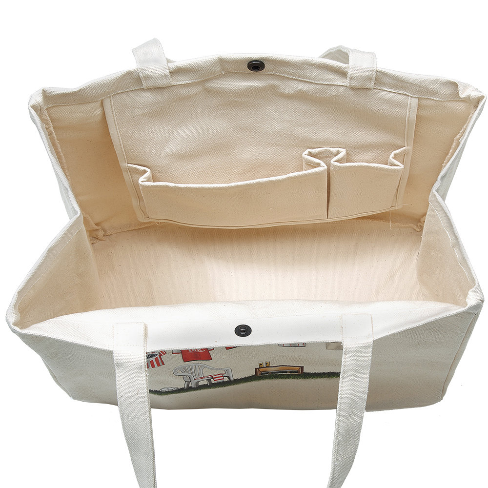 • Hochwertige Canvas-Tasche mit detailreichem Print in Naturbeige